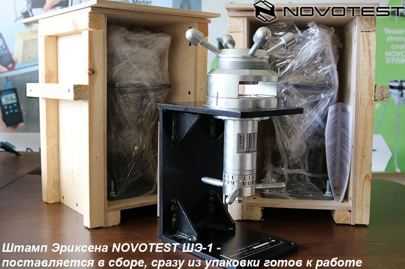 Прибор Эриксена предназначен для определения прочности покрытия при вдавливании сферического наконечника пуансона диаметра 20 мм в покрытие образца, положение которого фиксируется на матрице с внутренним диаметра 27 мм. Метод определения прочности покрытий по Эриксену являетcя эффективным комплексным методом определения качества покрытия, так как одновременно позволяет оценить прочность, адгезию, эластичность покрытия. Прибор позволяет точно измерить прочность нанесенного покрытия изделия, на которое при дальнейшей эксплуатации действуют статические и динамические нагрузки. Назначение: Измерение эластичности, прочности и стойкости ЛКП к растяжению, растрескиванию, отслаиванию от металлической поверхности методом вдавливания на определенную глубину пуансона со сферическим наконечником.