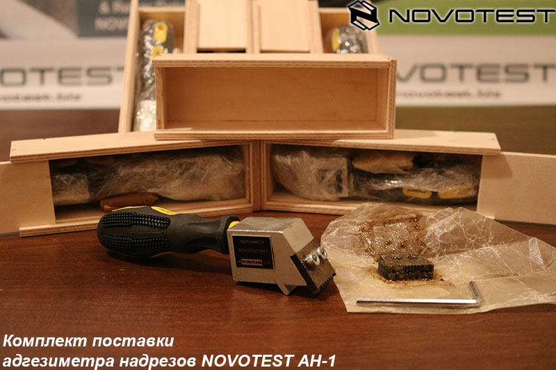 Багатолезовий адгезіметр-ніж NOVOTEST АН-1 призначений для визначення адгезії (сили зчеплення) за методом надрізів (паралельних або решітчастих) при товщинах лакофарбового покриття до 200 мкм, згідно з ГОСТ 15140, ISO 2409, ISO 16276-2, ASTM В 3359. Може застосовуватися на плоских та вигнутих поверхнях.