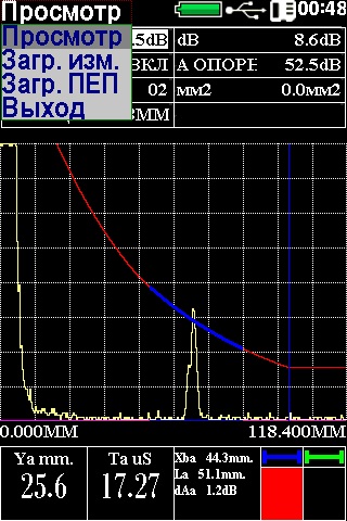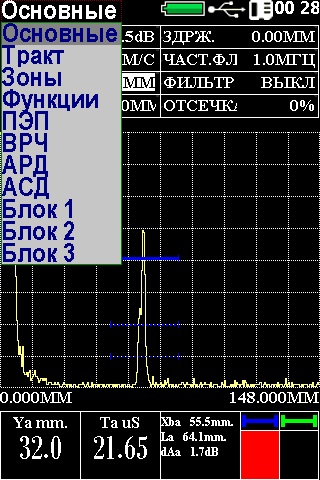 налаштувань з А-сканом (Б-сканом), обмежена розміром внутрішньої пам'яті (до 32 гігабайт), протоколів контролю зі збереженням усіх параметрів приладу