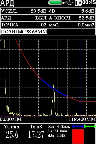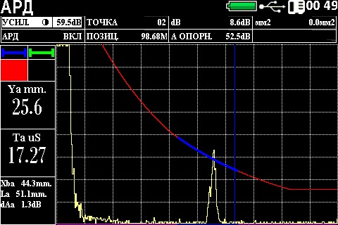 Крива Амплітуда-Відстань (АВК)побудова по 32 точках, регульована за висотою